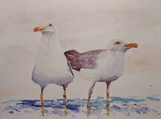 here are 2 more attempts at being a "loose" watercolorist.. Pure white backgrounds don't photograph very well, i find.